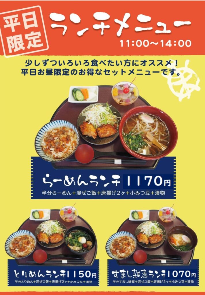 - 昭和50年代に京風の和風らーめんを提供し始め、今も人気の混ぜご飯のらーめん定食が始まりました。