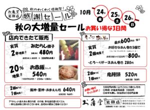 お亀堂藤沢店では日頃のご愛顧に感謝して10月31日(金)~11月3日(月祝)に「感謝祭」を開催!!