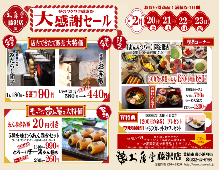 お亀堂藤沢店では日頃のご愛顧に感謝して2月20日(金)~2月23日(月祝)に「感…